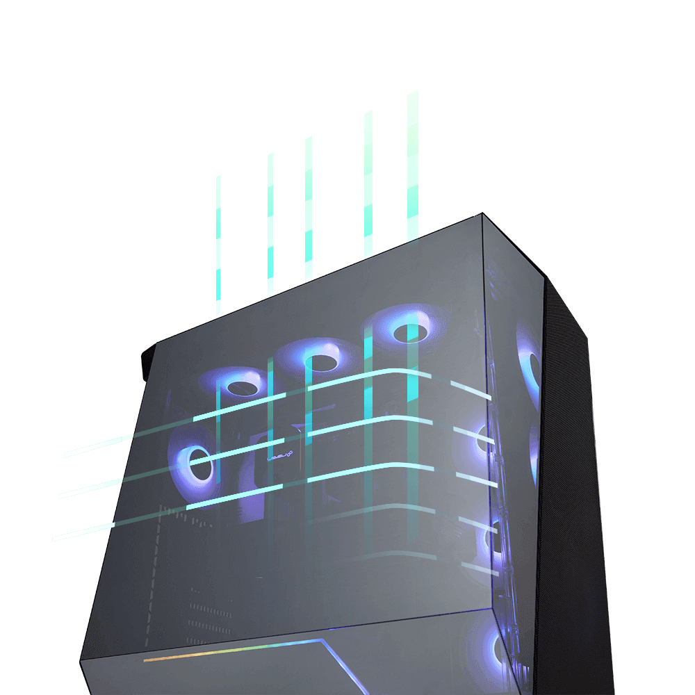 優れたエアフローによる冷却で、最新のハイエンドパーツにも対応、安定したパフォーマンスを発揮することができ、長時間のゲームプレイでも快適な動作を維持、プレイヤーを勝利へと導きます。