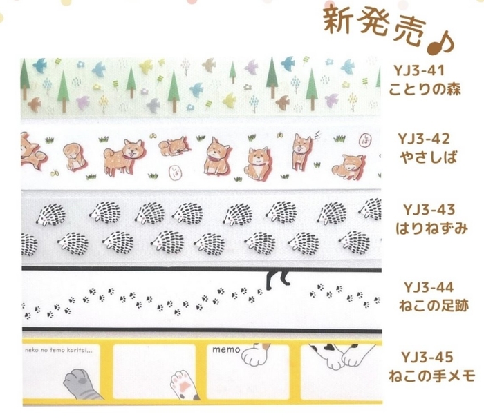 かわいい&おしゃれで実用性が高いデザイン養生テープ、新デザイン5柄どうぶつシリーズ各528円(税込)を発売。