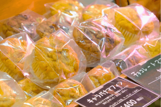 焼き菓子や和菓子、調味料や茶葉等の食品が販売されるエリア