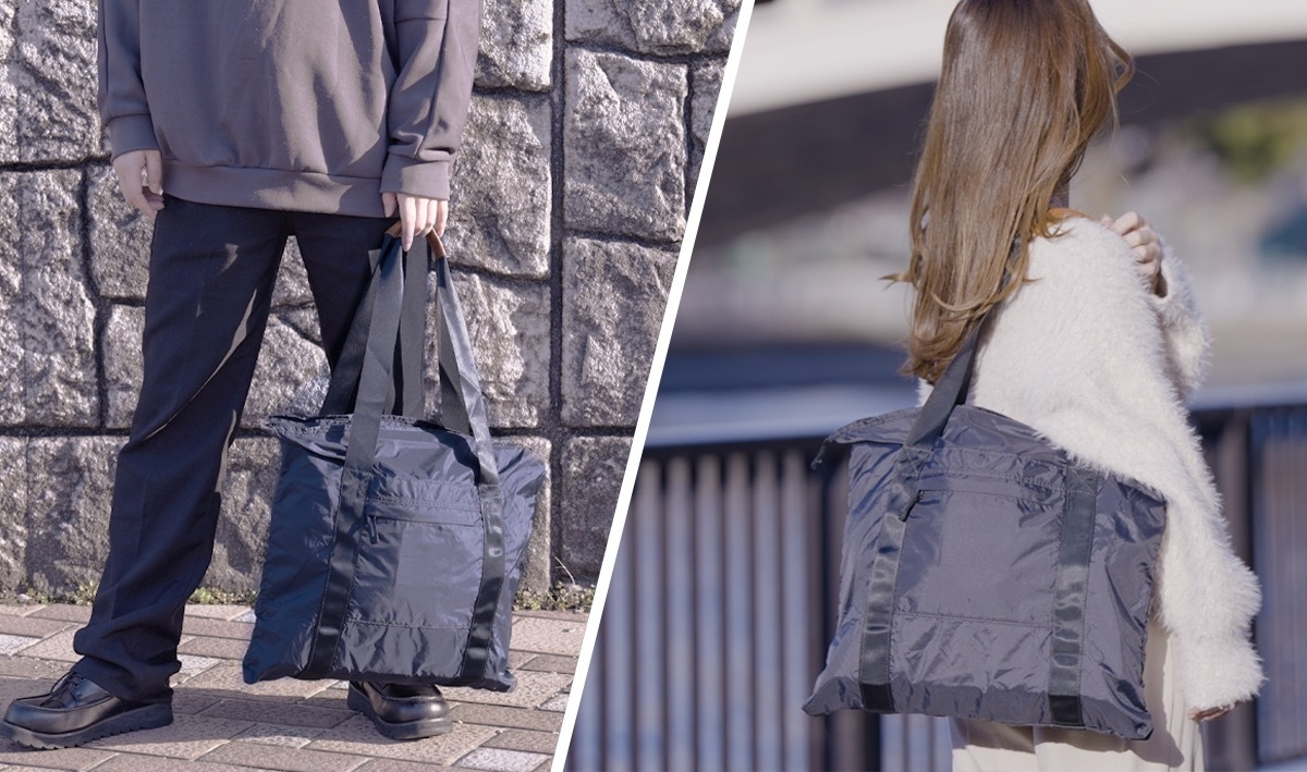累計2万個以上の販売実績があるエコバッグ「kusyutto」には、お買い物用途だけでなく、ビジネスシーンでのサブバッグや男性からのニーズなど、想定を超える多様な声が寄せられました。こうしたお客様の声と、「よりユニセックスに、日常に自然に馴染む、進化したエコバッグを届けたい」という開発者の想いから、メモ帳サイズからトートバッグに変身する「クシュットート」が誕生しました。