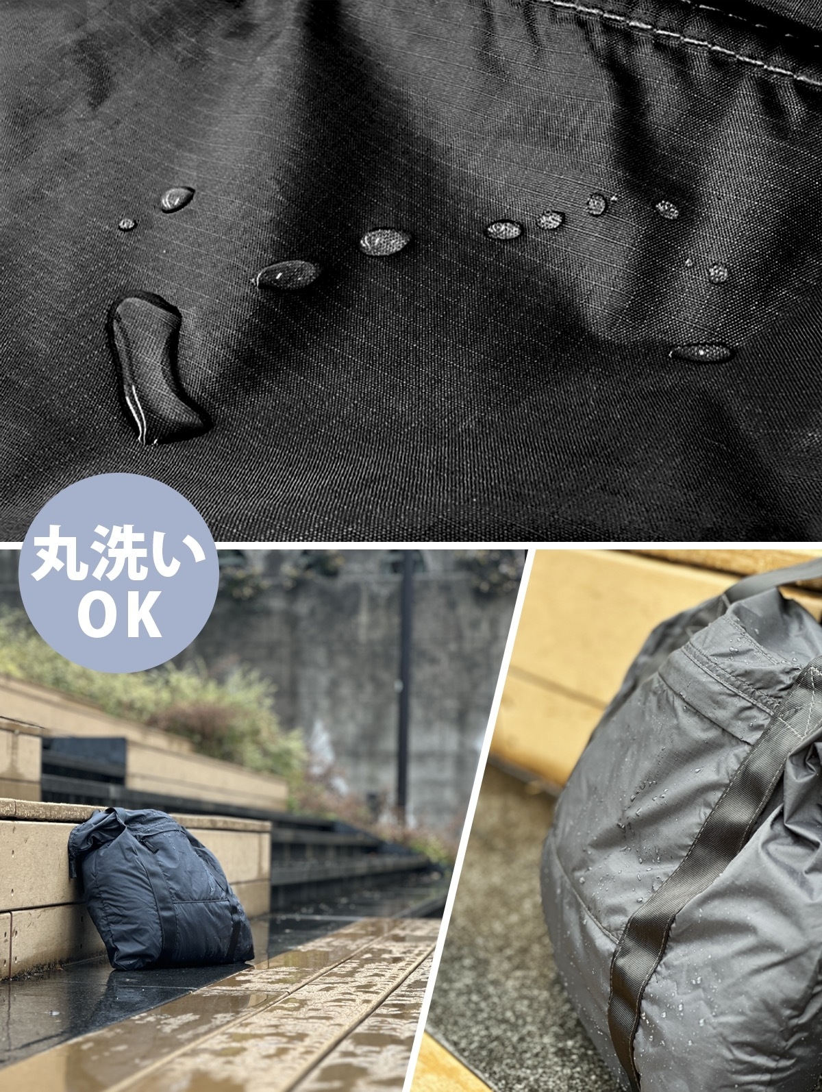 30kgにも耐えられた丈夫な生地、縫製で防滴加工も施されているためアウトドアでの使用、多少の雨や汚れもOKです。