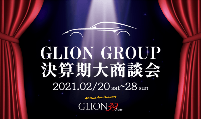 全18ブランドから特選車が多数!決算期の大商談会、GLION 39 Fairを2021年2月20日から開催します!日頃の感謝を込めて39万円車両もご用意!