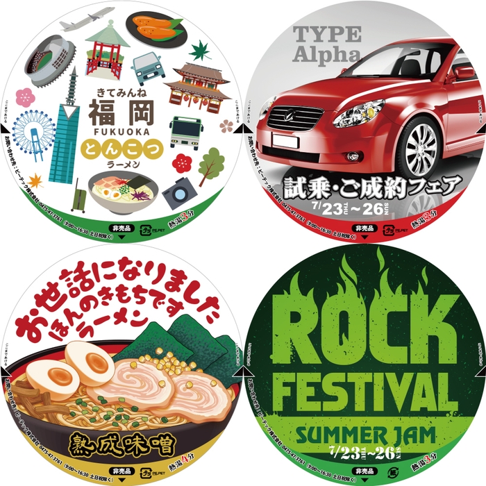シール面のデザイン可能範囲を大きく使えるので、より多くの情報を入れたい場合や、インパクトのあるデザインを作りたい場合にはこちらがおすすめです。