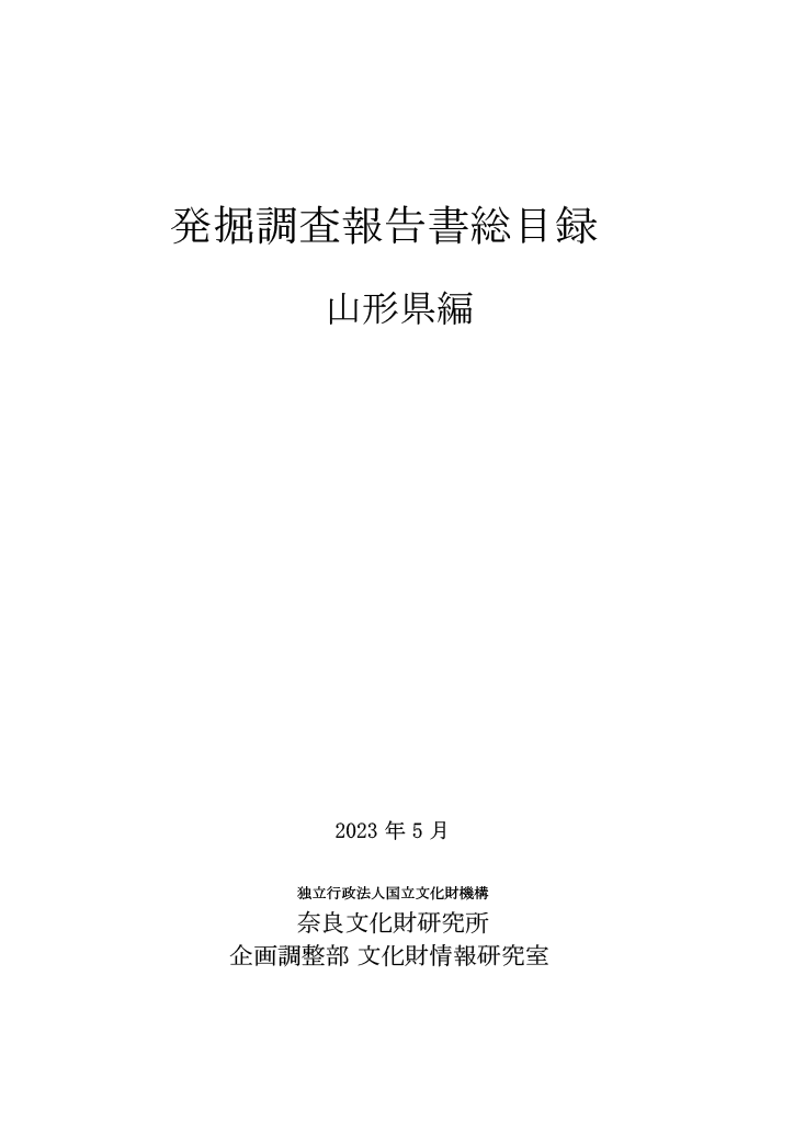 『発掘調査報告書総目録』 徳島県編・山形県編・福井県編・長崎県編 を公開しました『発掘調査報告書総目録』 徳島県編・山形県編・福井県編・長崎県編 を全国遺跡報告総覧で公開しました。本文をPDFで閲覧いただけます。2023-06-15 12:00奈良文化財研究所目次掲載対象の基準 【掲載対象】掲載対象の基準 【掲載対象外】項目の説明総目録表紙PDFダウンロードはこちら表紙PDFダウンロードはこちら表紙PDFダウンロードはこちら表紙PDFダウンロードはこちら画像・ファイル一覧一括ダウンロード表紙表紙表紙表紙
