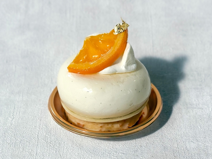 バニラを効かせたホワイチョコムースの中にオレンジコンポートを合わせました。