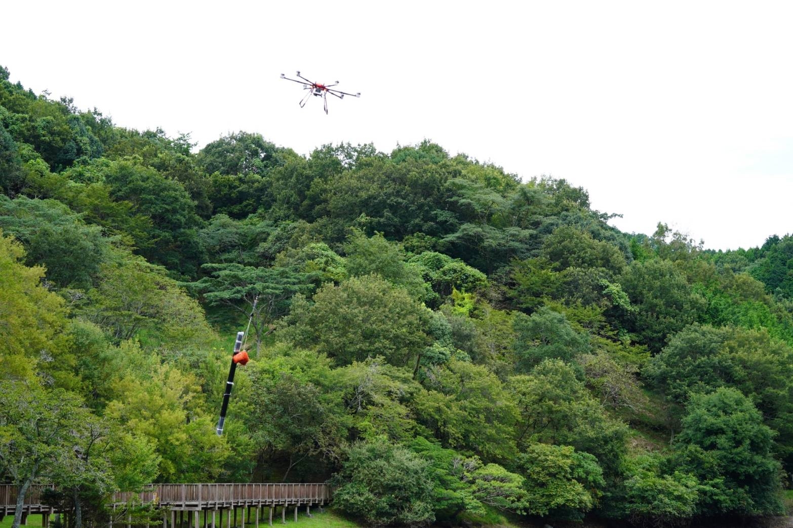 8月31日に大分県日田市の萩尾公園にてマゼックス社製林業用ドローンによる資材運搬デモンストレーションを開催しました。