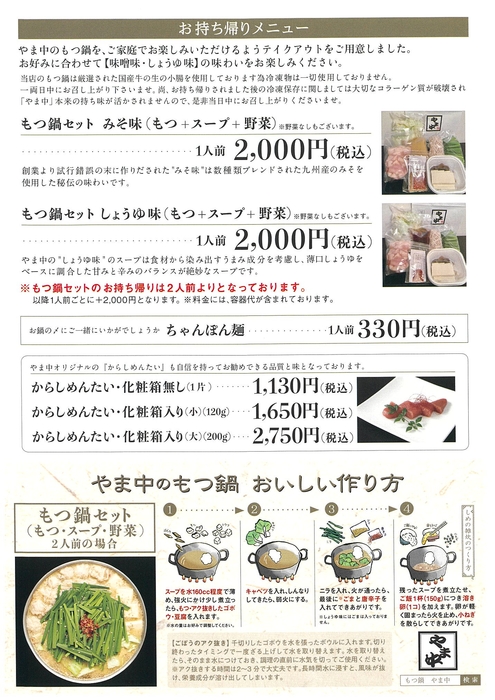 【福岡の老舗】博多もつ鍋やま中のテイクアウト