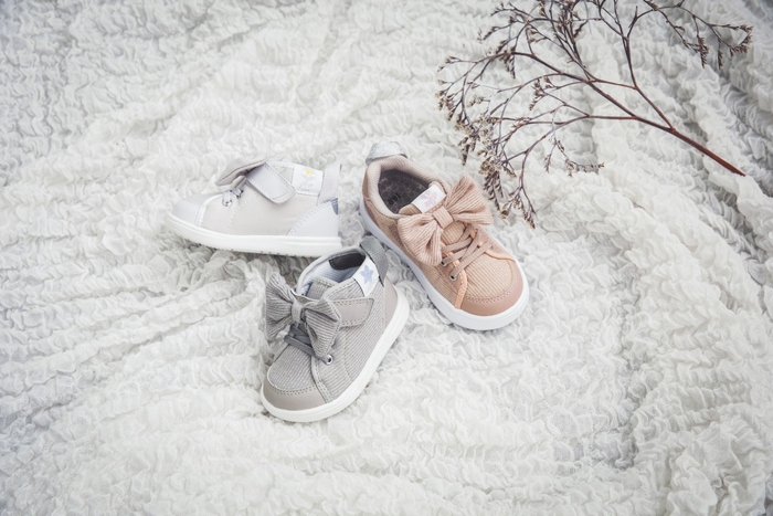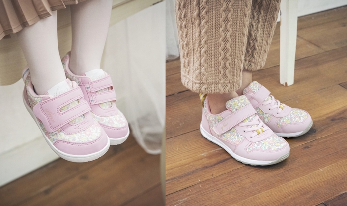 野花をイメージした「wild flower series」がリリース。水彩画家の一柳綾乃さんのイラストをタンネームにあしらい、3つの花をそれぞれイメージして作り上げました。人気のリボンをほどよいラメ感のあるニット材であしらい、上品な仕上がりに。ライトソールなのでとても軽く、活発に動くキッズにもマッチする可愛さと機能性を兼ね備えたシューズです。