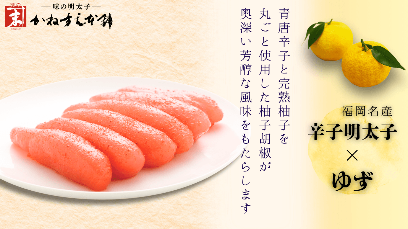 『辛さは控えめだけど、旨さが際立ちお酒のお供として喜ばれる商品』をコンセプトに、漬けタレの配合や漬け時間を、従来の商品から大幅に変更し、大分県産の柚子胡椒をブレンドすることで、豊かな香りと程よい酸味が辛子明太子の旨味を際立たせながらも、マイルドな味わいに仕立て上げました。