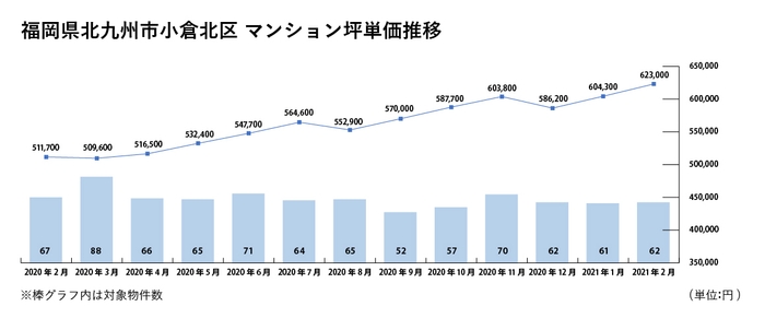 ・坪単価は、2020年2月~2021年2月の13ヶ月で平均を算出。
