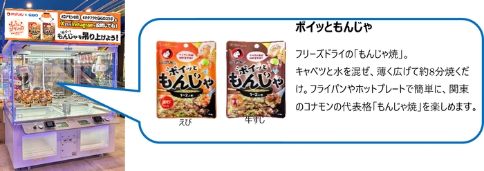 友達、家族、仲間と囲んでワイワイと楽しめるクレーンゲーム&お好み焼。5月7日(水)「コナモンの日」にGiGO総本店のクレーンゲームで遊ぶと、オタフクソースの商品「ポイッともんじゃ」がゲットできるイベントを開催します。クレーンゲームと「ポイッともんじゃ」で、こころ踊る、話はずむ、ライブな楽しい時間を楽しもう!