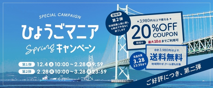 ■3,980円以上(税込み)で使える20%OFFクーポン配布中(ひょうごマニア内でご利用いただけます)