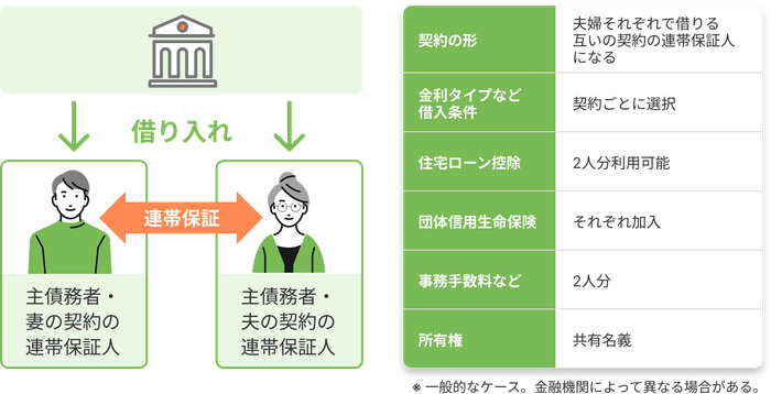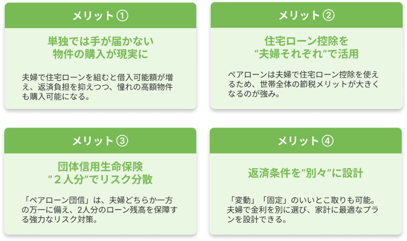 • ペアローン:同じ物件に対して夫婦それぞれが別々に住宅ローンを契約する方法。