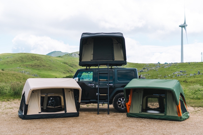 「peakpod」は、取り外しや持ち運び、地上での使用が可能となり、従来のルーフトップテントにはなかった全く新しいタイプのテントです。