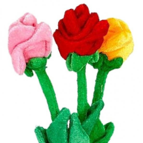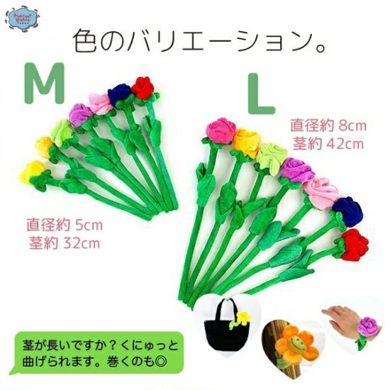 こちらが、ぬいぐるみ花束用のキットです。薔薇タイプのMサイズで5本がセットになっています。他にもLサイズがあるので、バランスや可愛さを考えながらご自分で花束を作っていただけますよ♪