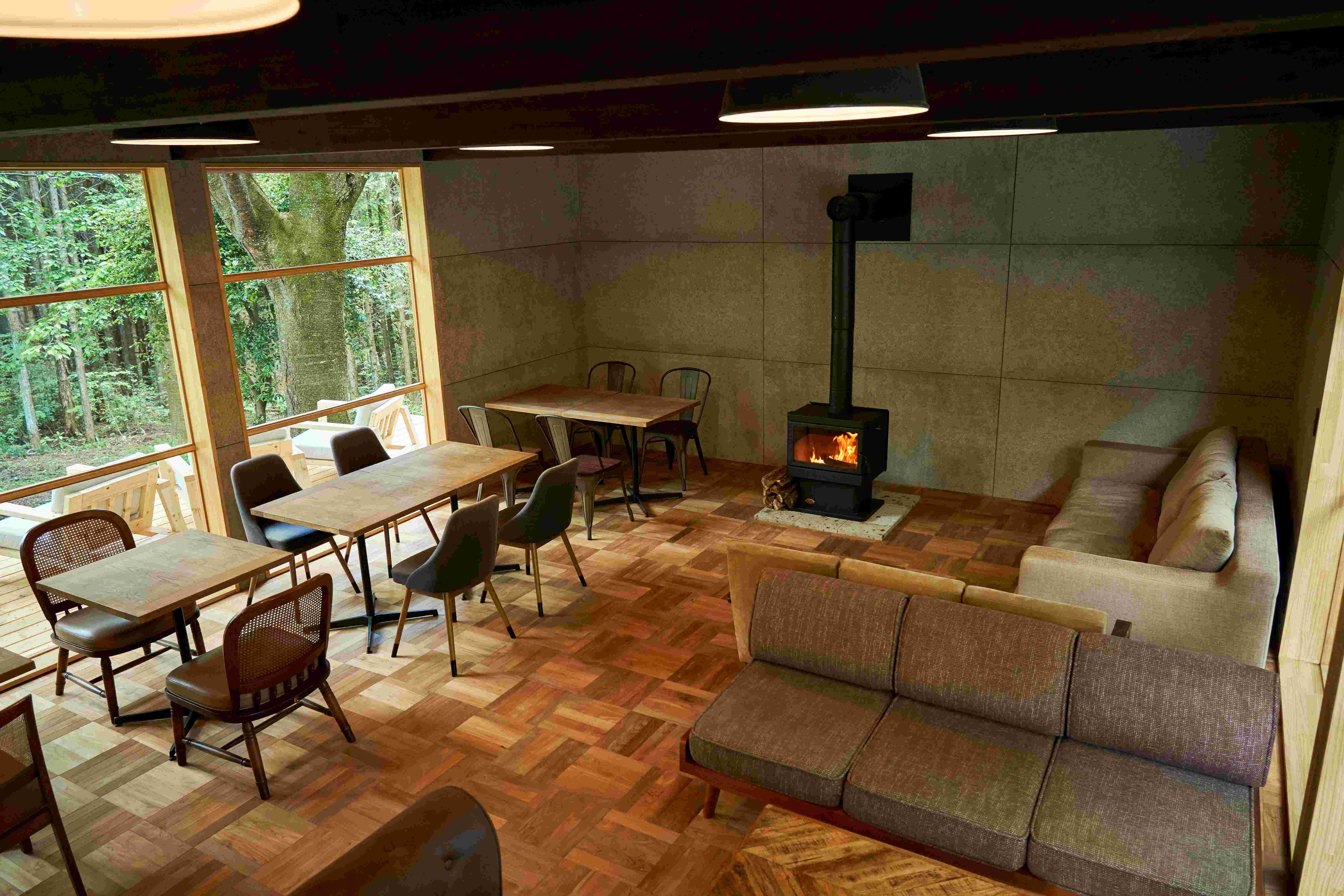 森林の木々達と一体となったカフェ