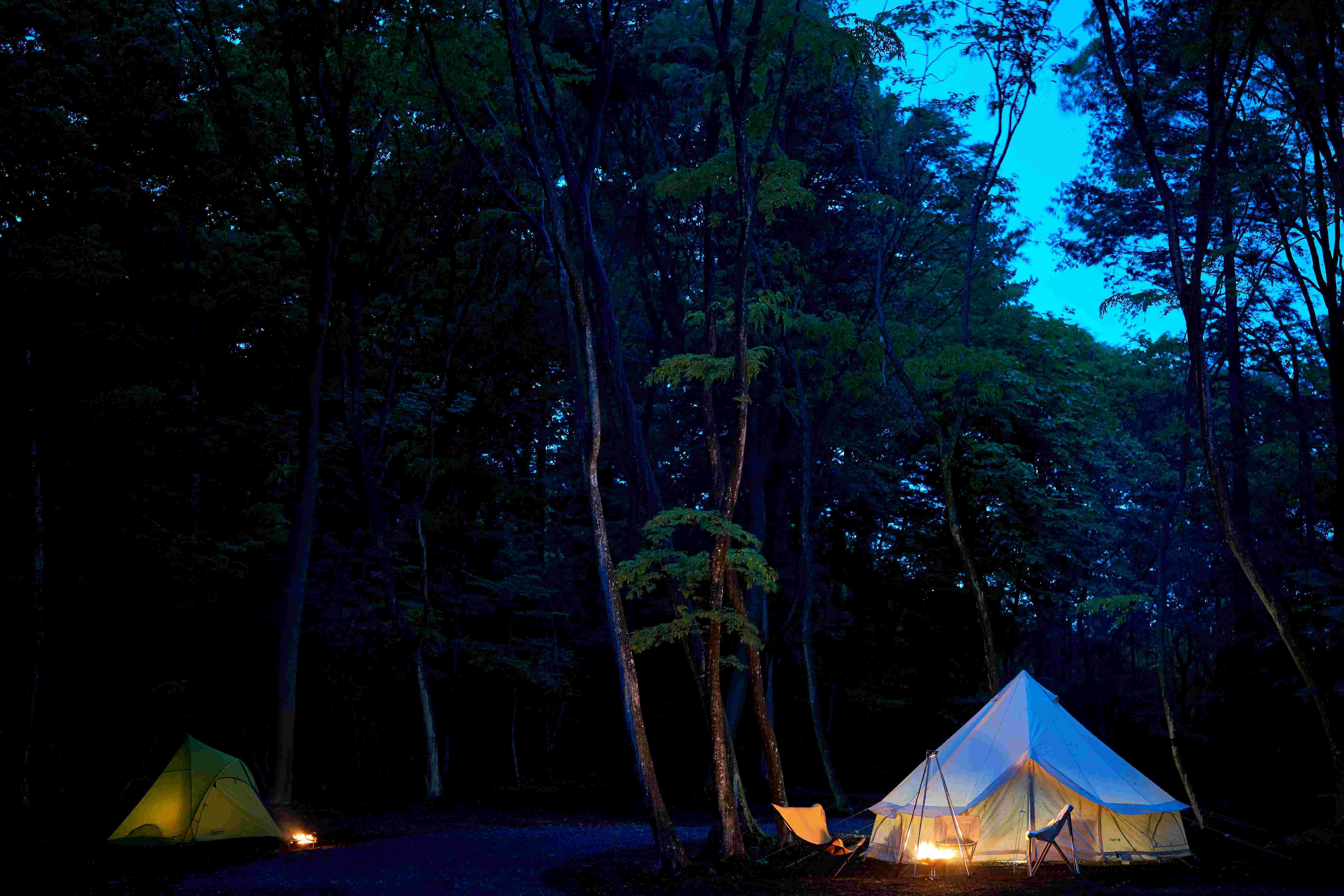 利用人数に合わせた大中小のそれぞれの広さを持つキャンプサイトが計12区画、そして、高級キャンプギアが常設された手ぶらキャンプエリアを3区画ご用意しています。