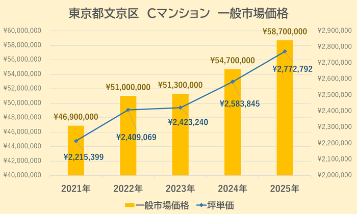 Cマンションの一般市場価格・坪単価の推移は上記【図5】の通りです。