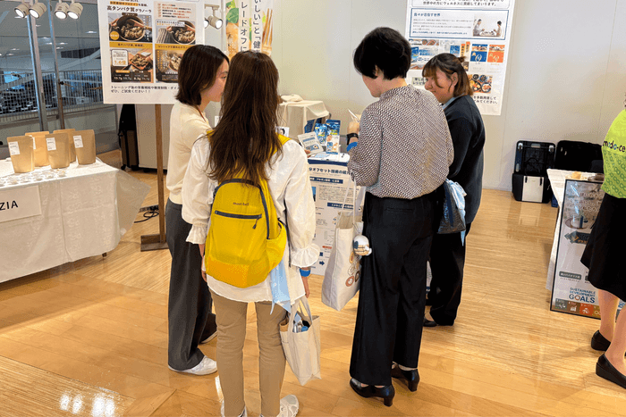 未来体験ブースにて塩分オフセット商品を来場者へ紹介