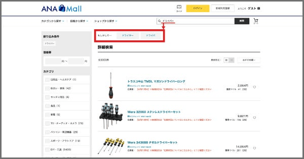 検索時の入力ミスの訂正や近しいキーワード候補の表示、該当商品が見つからない際のサイト離脱防止にもつながります。