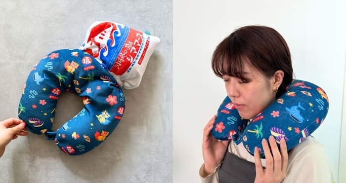 ネックピローにした時に散りばめられた【ちゅらさんぽアート】の総柄もとってもキュートで、見るたび沖縄旅行の思い出が浮かんできそう♪