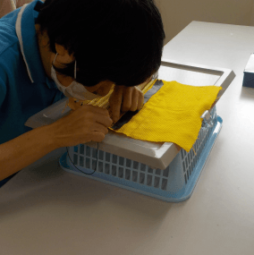 東急線「自由が丘駅」より徒歩5分。バス通りに面した住宅街にある奥沢福祉園は、その前身と なる等々力福祉園から名称と場所を変え、平成17年4月に開設しました。 知的に障害のある18歳以上の方を対象に作業、創作、運動、余暇等の日中活動をはじめ、 宿泊活動や外出、季節行事、施設まつり等を催しながら、暮らしの中での様々な経験を通じて 利用者の方が地域で豊かな生活が送れるよう支援する施設です。 今回、出品する自主生産品の中で、お勧めしたい「おりぞう」はストッキングを編み込んで作る カラフルなデザインが特徴的です。皆様の生活のお役に立てたらと思います。