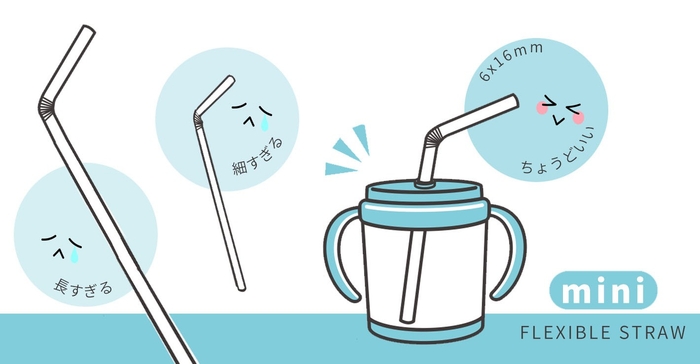 本商品は、「ストローコップに使うストローの長さと太さ」に関する消費者様の悩みから商品化されました。従来品は子供や介護のコップには長すぎて毎回カットする必要があり、また短いタイプは直径が細すぎる。そんな課題を解決し、直径6×全長160mmという「ちょうどいいサイズ」のストローを実現しました。