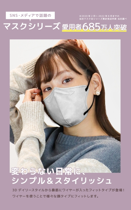 最強小顔見えの不織布マスクに、ストレスフリーなフィットタイプが登場。「変わらない日常に、シンプル&スタイリッシュな遊び心を!」
