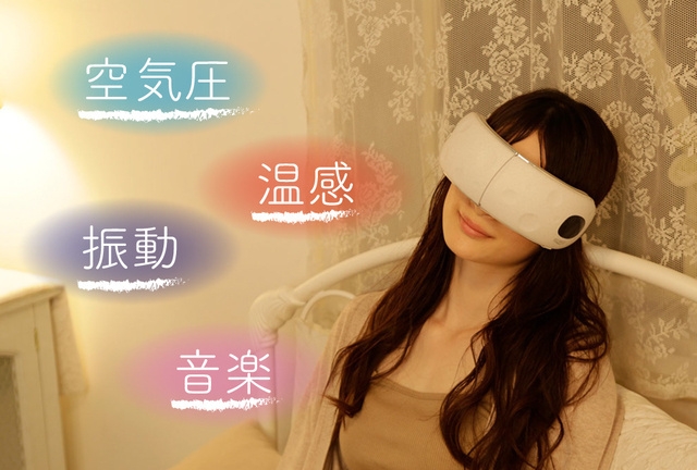 「アイフレッシャー ラナ」は、空気圧・振動・温感、音楽の4つの機能を搭載し、さらにそれらを組み合わせ5つのモードをプログラミング。PCやスートフォンによって目元を酷使する現代人に向けた「癒し」のアイテムです。