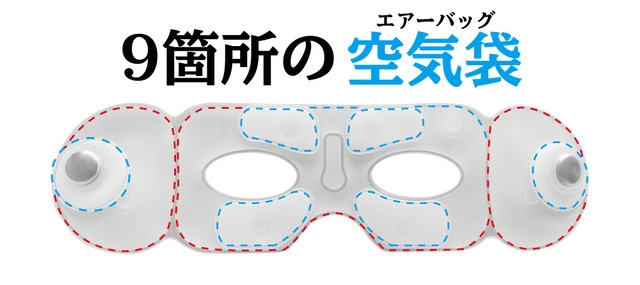 また、目元全体を優しく包み込む9つのエアーバッグを搭載。両端に入った磁石が、空気袋が膨らんだ際にこめかみを力強く押してくれます。