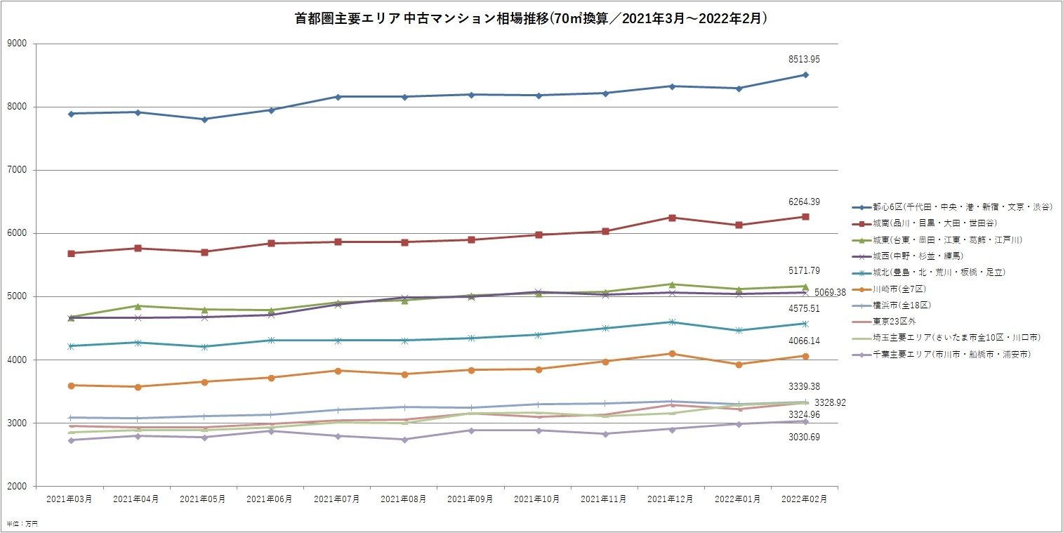 ■主要エリア 中古マンション相場推移(2021年3月~2022年2月)