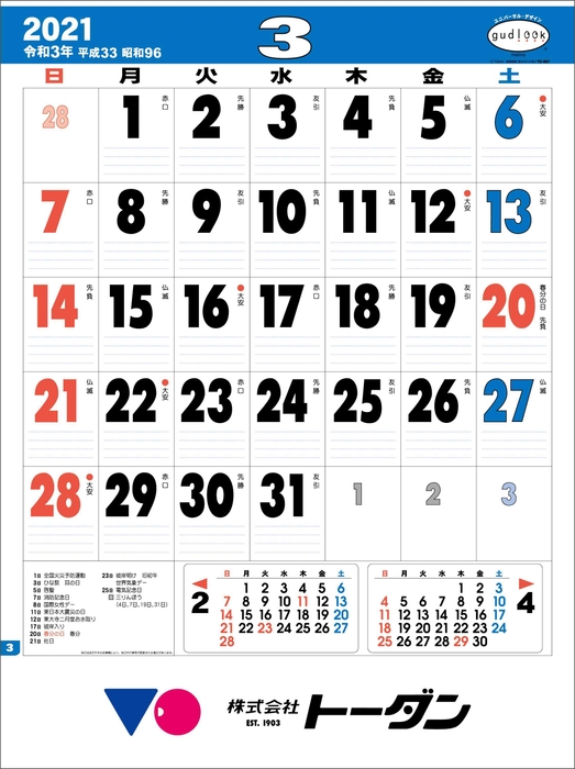 見やすさ、使いやすさにこだわったユニバーサルデザインの壁掛カレンダー。