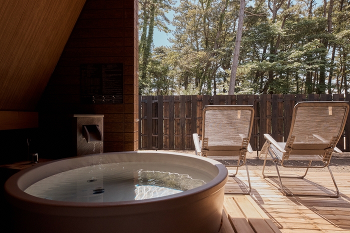全10棟に大洗温泉の露天風呂と世界シェアNo.1のハルビアのサウナヒーターを完備。