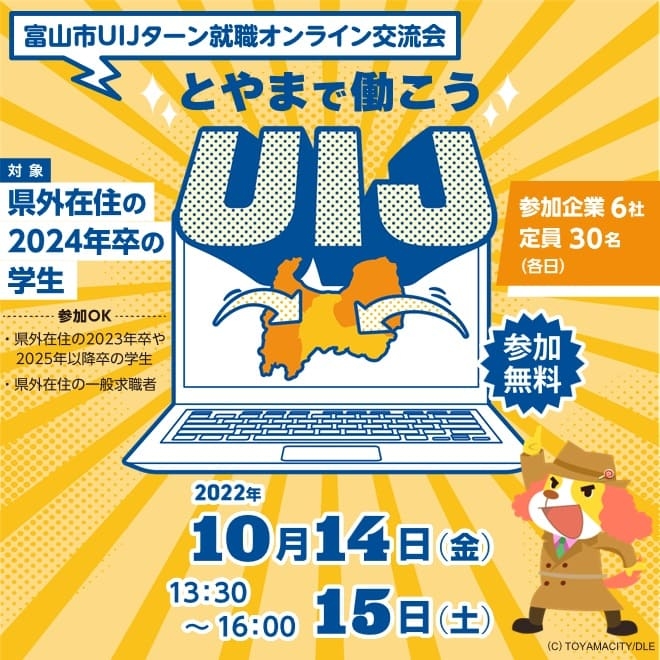 就活準備にオススメ!富山へのUIJターン就職のための、オンラインイベントを開催します!