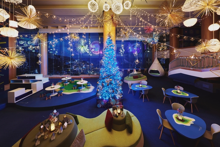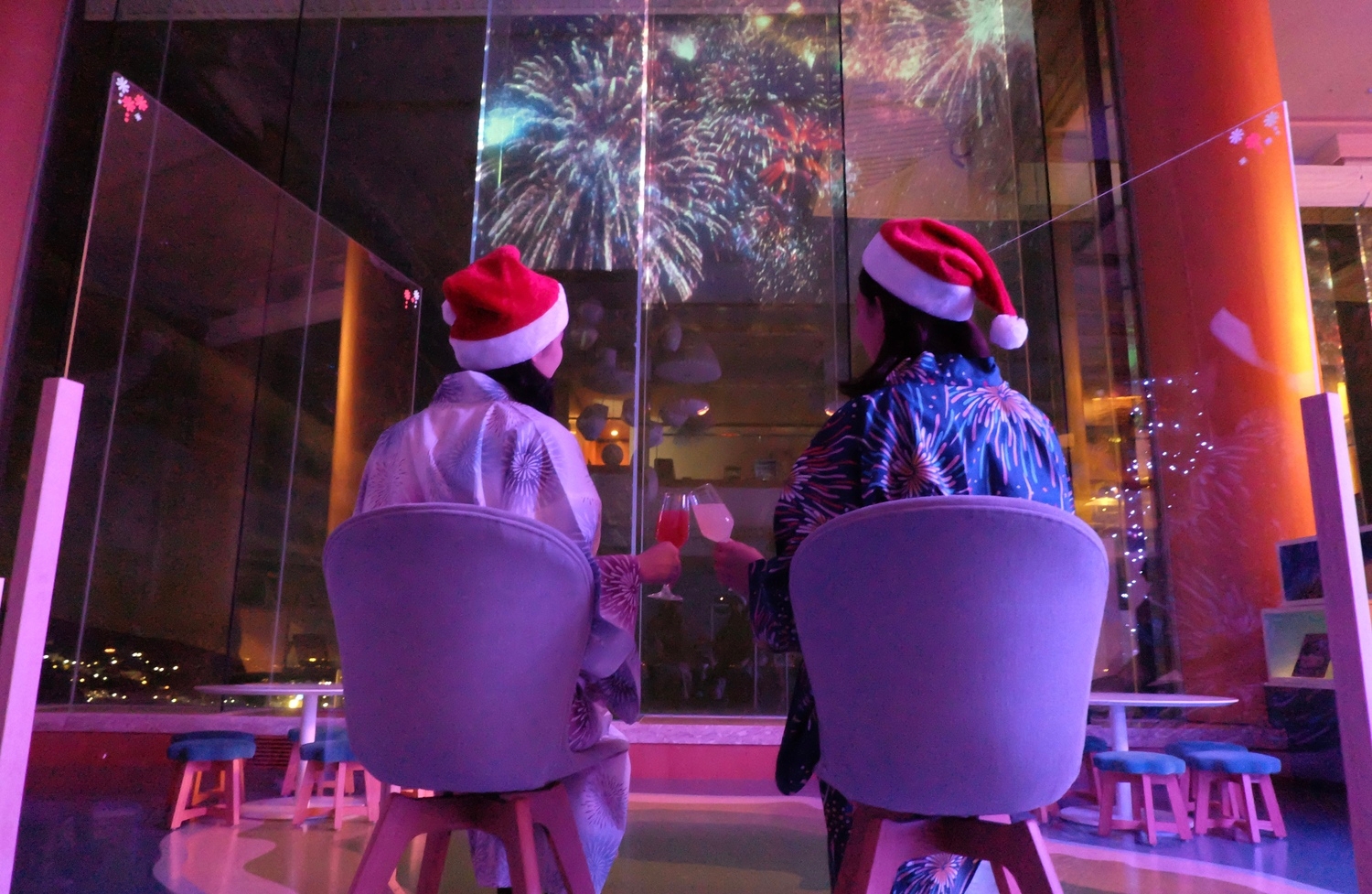 高さ約6メートルの花火クリスマスツリーと、窓に投影された花火の動画で花火鑑賞をしている気分に浸れます。花火や花柄の浴衣と子ども用甚平の無料貸出しを利用できるので、より花火大会にいる気分を味わえます。今夏行けなかった花火大会のリベンジです。サンタクロースの帽子と合わせれば、クリスマス気分も楽しめます。鑑賞席にはアクリルパネルが設置され、周囲との密接を回避できるので、半個室空間のように安心して過ごすことができます。