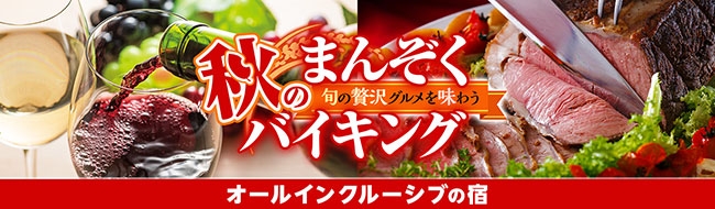 好きなものを好きなだけ、お腹いっぱいお召し上がりいただけるのがバイキングの最大の魅力ですが、オールインクルーシブの宿では、お財布の心配をせず各種アルコールと一緒にゆったりと楽しんでみませんか?バイキングの新しい楽しみ方が見つかる宿に、この秋、足をお運びください。