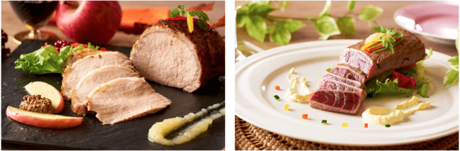 そんな東山グランドホテルの今回のフェアの魅力は、ライブキッチンで焼き上げる「厚切りステーキ」のような食べ応え抜群なメニューはもちろん、福島県の郷土の味、山里の恵みをたっぷり使った見た目に秋を感じるメニューがたっぷりと並ぶことです。