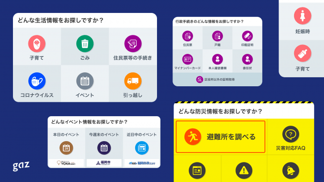 リニューアルにあたっては、2社共働のもと「福岡市で暮らす人が、誰でも、必要なときに、必要なサービスにスムーズにアクセスできる『入り口』になる」をコンセプトにUIデザインを実施し、gazはユーザーへのインタビューやデザイン実務を担当、以前より見やすく、必要な情報にアクセスしやすいデザインを実現しました。