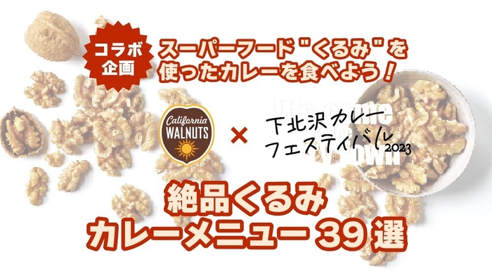 カリフォルニアのくるみ生産農家と加工業者を代表する米国農務省の外郭団体であるカリフォルニア くるみ協会は、スパイラル株式会社(東京都港区、代表取締役CEO:佐谷 宣昭、以下「スパイラル」)とコラボし、2023年10月5日(木)~10月22日(日)に開催する「下北沢カレーフェスティバル2023」に参加する39店舗にて、カレーとカリフォルニアくるみのコラボメニューを提供することをお知らせいたします。