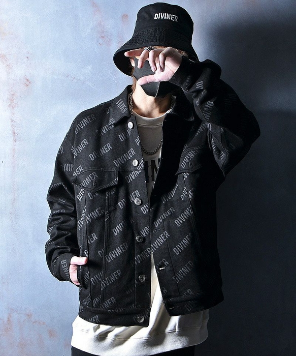 DIVINERらしいブラックを基調としたデニムジャケットに、ブランドロゴを全体に散りばめたひと品は、何度も自分自身と向き合い、その末に誕生した自分だけの信念を表現しました。