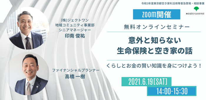 空き家活用サービス『アキサポ』を展開する株式会社ジェクトワン(本社:東京都渋谷区、代表取締役:大河幹男 以下、ジェクトワン)は、「令和 3年度東京都空き家利活用等普及啓発・相談事業」による空き家セミナー 「意外と知らない生命保険と空き家の話~くらしとお金の賢い知識を身につけよう!~」をオンラインにて実施します。