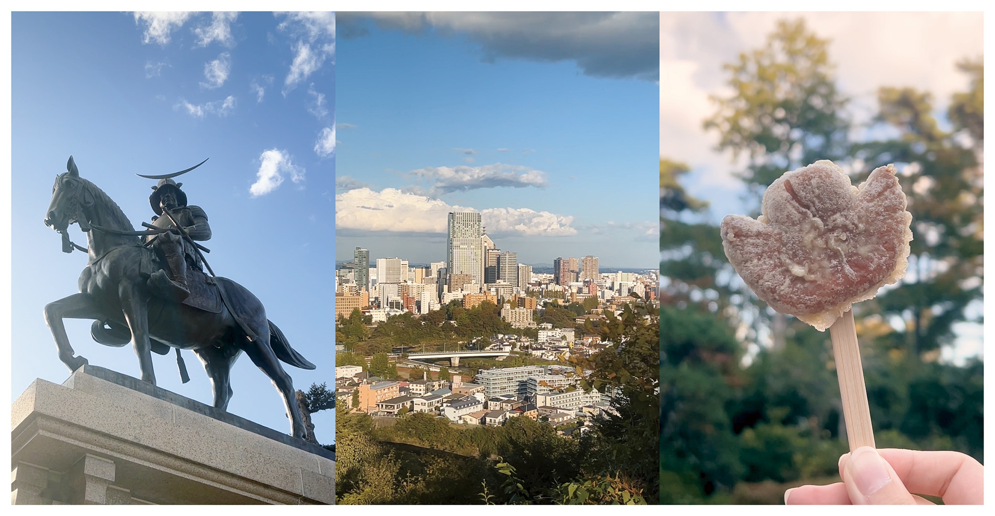現在は公園として開放されていて、伊達政宗公の騎馬像も建つ本丸跡からは仙台市中心部から太平洋まで一望することができます。お土産屋や資料展示なども充実しています。