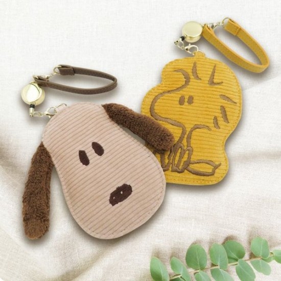 スヌーピーの新シリーズ、コーデュロイ素材のバッグやポーチ、パスケースをご覧いただきました。