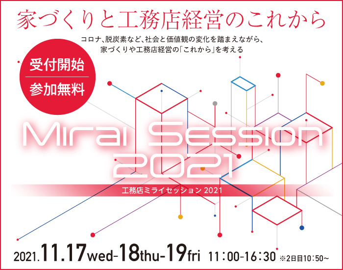 「工務店ミライセッション2021」は、“これから”に挑む工務店経営者に、家づくりと経営のヒントを提示します。