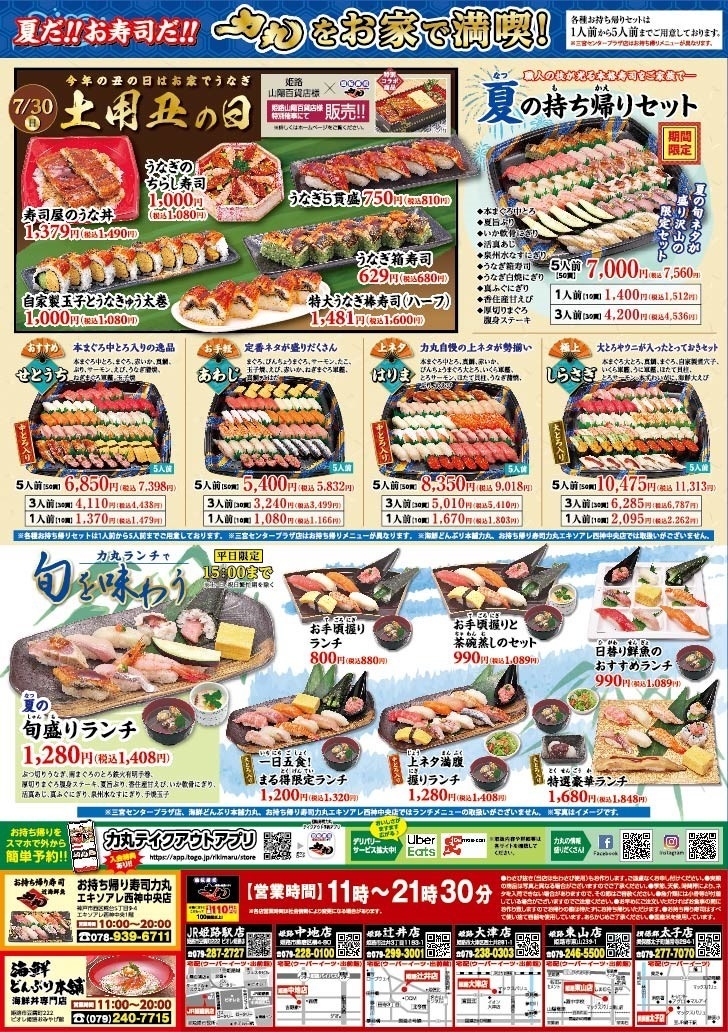 (※海鮮どんぶり本舗力丸、お持ち帰り寿司力丸エキソアレ西神中央店では取扱いがございません。)
