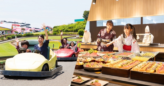 ゴーカートやバイキングなどの定番アトラクションはもちろん、パットゴルフやアーチェリーなどめずらしいアクティビティも充実しています。さらに、昨年国内最大級の恐竜アトラクション「恐竜の森」がオープン。30種60体以上の恐竜たちが棲む26,000㎡の広大な森を見て歩くだけでなく、ミッションに挑戦しながら楽しめる体験型のアトラクションは、お子様から大人まで楽しめます。天候を気にせず思いっきり遊べる3階建ての屋内遊園地「キッズパラダイス」など、小さなお子様も安心して遊べる施設もあるので、3世代の旅行にもぴったりです。