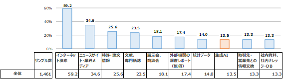 研究・開発職の情報収集における生成AIの活用は1割強にとどまる 情報に求めるものは「質・精度」 「ビジネス情報の収集シーンとその課題に関する調査」の結果を公表