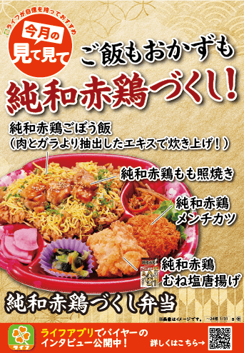“おいしい” “ワクワク” “ハッピー” をお届けするライフコーポレーションは、岩手県産純和赤鶏のおいしさを知っていただきたいという思いから開発された「純和赤鶏づくし弁当」を、1月4日(木)に新発売いたしました。