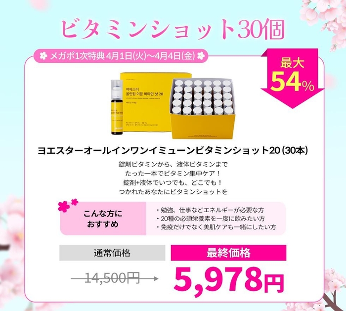 さらに、4月5日からは第2弾の特典が追加されますので、ぜひこの機会に購入して、体の中から美しくなりましょう!