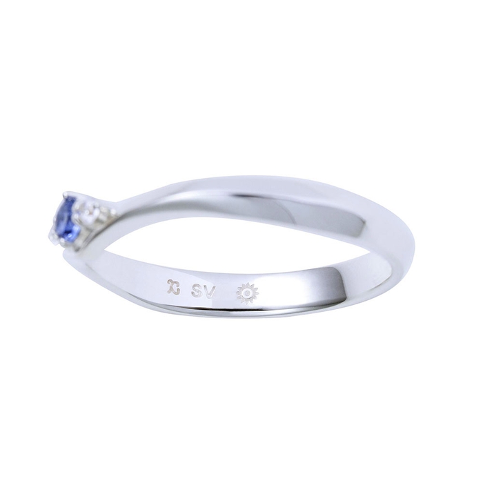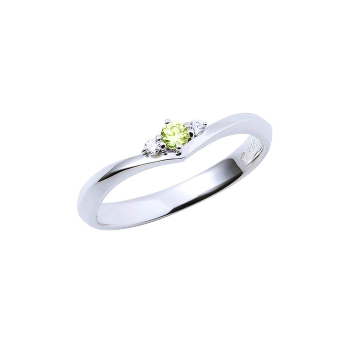 V字フォルムにイメージカラーストーンをセットしたシンプルなデザイン。
